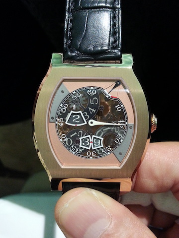 Vagabondage III in Pt with a remontoir d’égalité and jumping seconds. The remontoir d’égalité provides a contact force to the escapement. It's a pretty slim watch with the added complications. Like the other watches in the Vagabondage series, the case is well made with an unsigned dial.